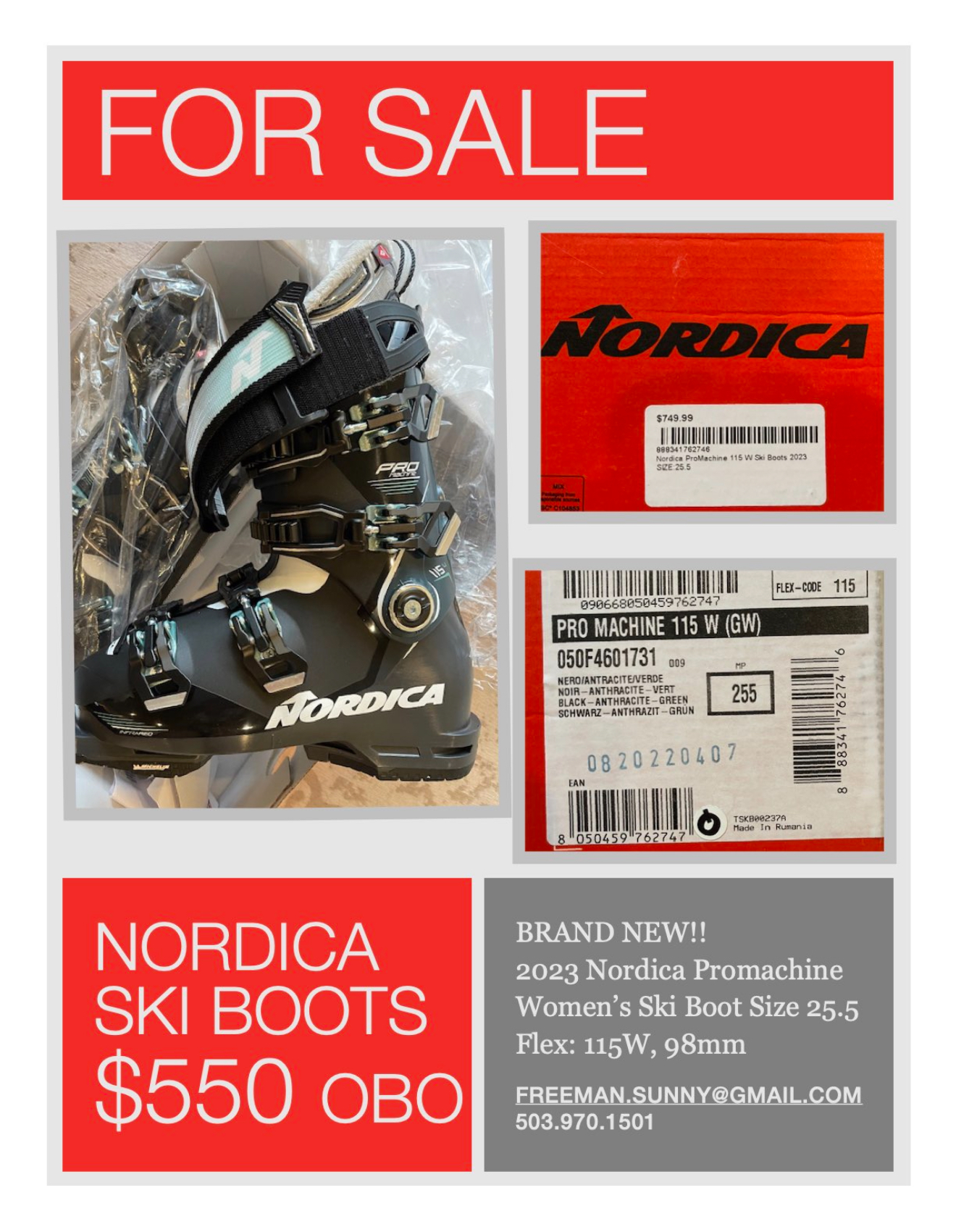 BRAND NEW: Women’s NORDICA Pro-Machine SKI BOOT SIZE 25.5